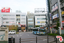 - 東口改札を出ましたら、右方向へお進み頂き、ロータリー入り口までお進みください。