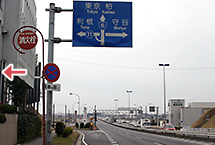 - まっすぐ道なりに約13km(30分)進んでいただきますと、国道6号線とぶつかる交差点がありますので、それを右折。その先、大利根橋手前で利根方面(県道11号)に進んでください。